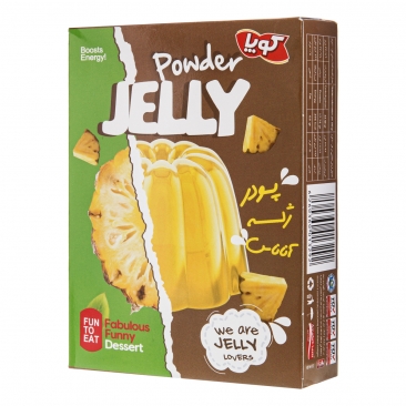 ترکیبات پودر ژله آناناس : شکر سفید، ژلاتین خوراکی، اسید سیتریک (۳۳۰E)، تری سدیم سیترات (۳۳۱E)، اسید آسکوربیک (ویتامین ث E300))، طعم دهنده آناناس، رنگ مجاز خوراکی سانست یلو (۱۱۰E)،کینولین یلو(E104).