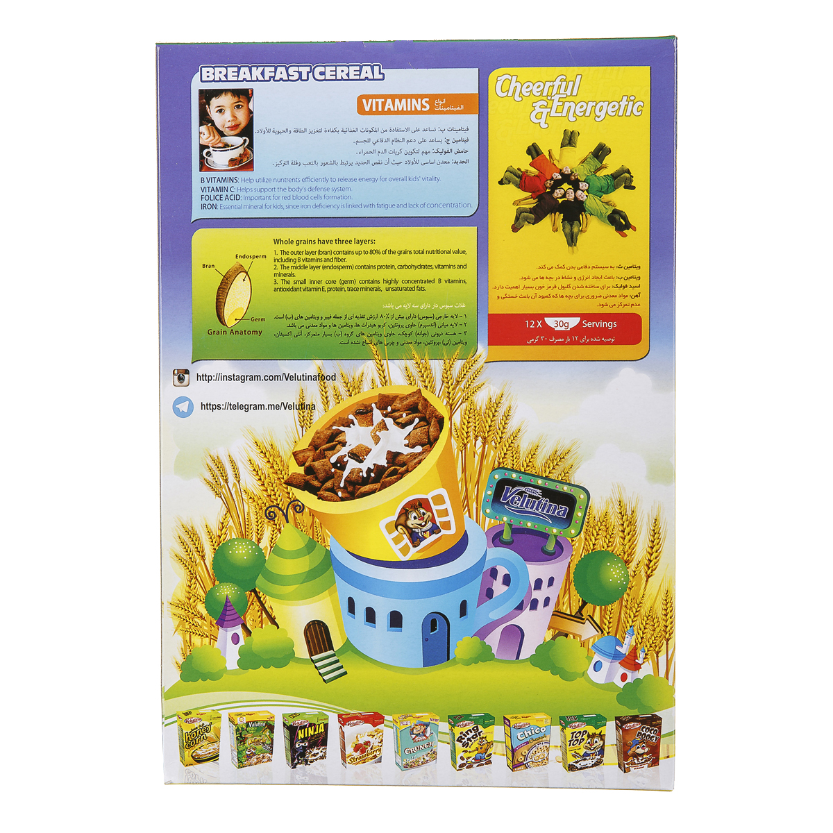 آرد گندم - آرد برنج -آرد ذرت - شکر - پودر کاکائو - شیر خشک - روغن مایع نباتی - گلوکز مایع - بیکینگ پودر - کربنات کلسیم - عصاره مالت - آب