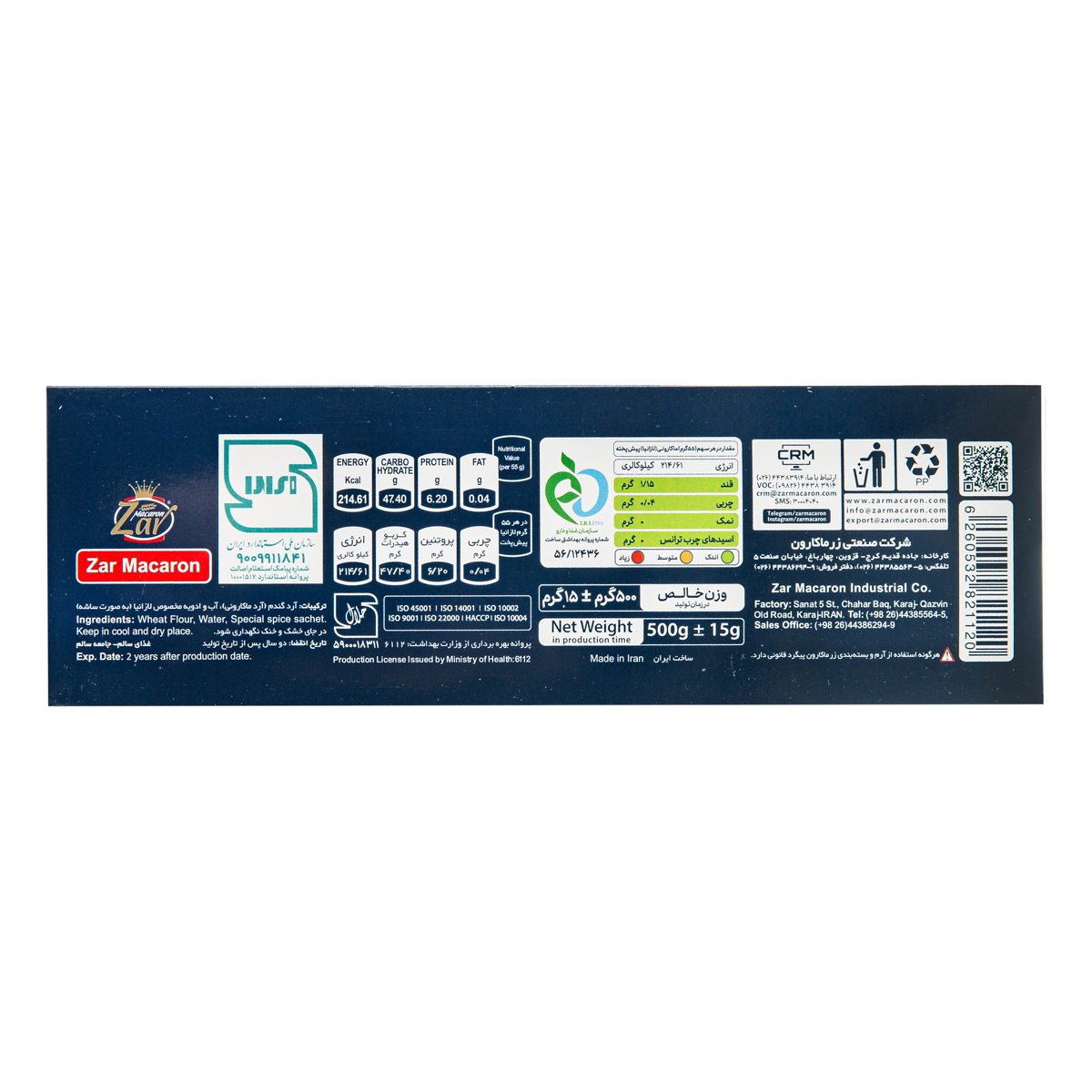 ترکیبات : آرد گندم(آرد ماکارونی)،آب و ادویه مخصوص لازانیا(به صورت ساشه)