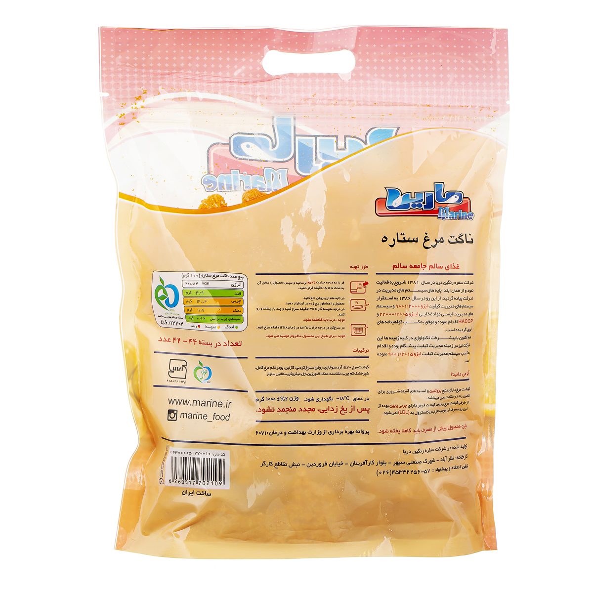 ناگت مرغ ستاره کم چرب 1 کیلویی مارین