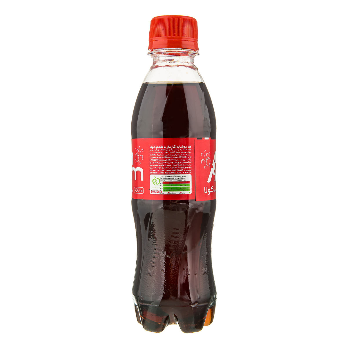 ترکیبات: شکر، گاز کربنیک، اسید فسفریک ( E338 )، کارامل ( E150d) ، کافئین (100PPM)، طعم دهنده طبیعی کولا، بنزوات سدیم (E211)(نگهدارنده)(100PPM) وآب آشامیدنی.